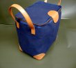 車椅子に装着するためのバッグです。当時取引のあった東急ハンズを通してのオーダーで、詳細なデザイン指定はありませんでしたが実際に作ってみると思いの外かわいいバッグだったので画像や寸法などのデータを残してありました。中にウレタンパッドなどを装着してショルダーバッグにするとかわいいカメラバッグになるでしょう。。